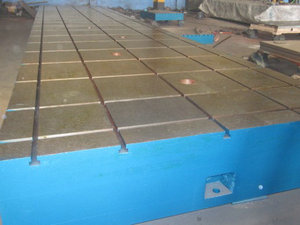 重型鑄鐵平臺按GB/4986-85的標準制造,產品制成筋板式和箱體式,工作有長方形,材料HT200,工作面采用刮研工藝,工作面上可加V型、T型、U型槽和圓孔、長孔等。平板是用于工件檢測或劃線的平面基準器具。平板安裝應調至水平、負荷均分布于各支點上,環境溫度(20±5℃)使用時應避免振動。